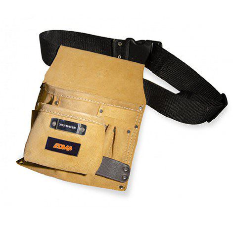 Ceinture poche à outils - Edma Fabriqué en cuir de vachette lisse de première qualité. Ceinture en nylon réglable. 8 poches. 2 porte-outils. 1 pochette pour mètre ruban.